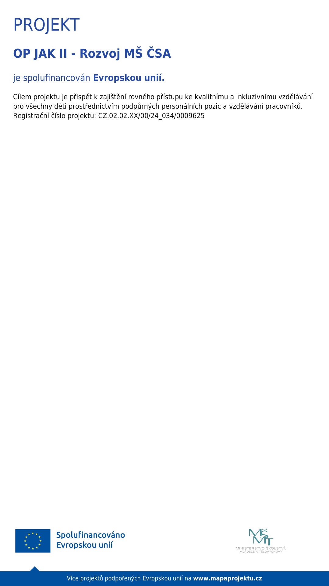 Název projektu: OP JAK II - Rozvoj MŠ ČSA